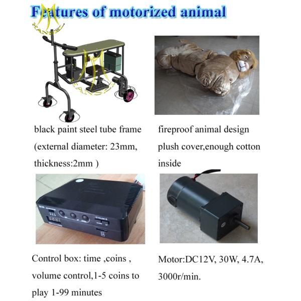 Plush motorized animal are also called walking animal bike ,battery animal car, ride on animal toys,4 wheels bikes, happy rides, mountable animals,plush toy on animal, animals electric toys, children play electric operated coin toys, electric toy cars for kids, toy rider coin animal , toys animal electric, stuffed animals that walk, motorized plush animals, zippy toy rides on animal, kids ride ,kiddy ride machine, battery operated toys ,animal walking toys, battery operated ride animals and so on. There are different animal designs with cool music which are attractive for players 1-101 years. They are goods investment for shopping malls, super-market ,parties, events,game centers, amusement park and play ground,etc.